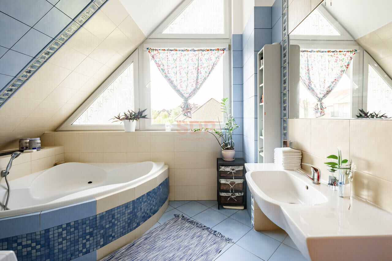 Ogromnym atutem są wielkopowierzchniowe okna w pomieszczeniach na piętrze, w tym łazience, zapewniające maksimum doświetlenia.