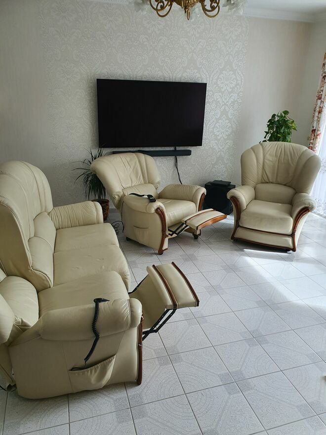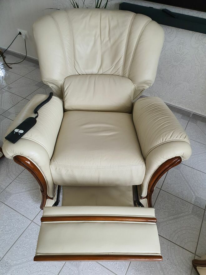 Piękny skórzany włoski wypoczynek ,elek trycznie rozkładany .tel 513 - pokaż numer telefonu -Leokadia